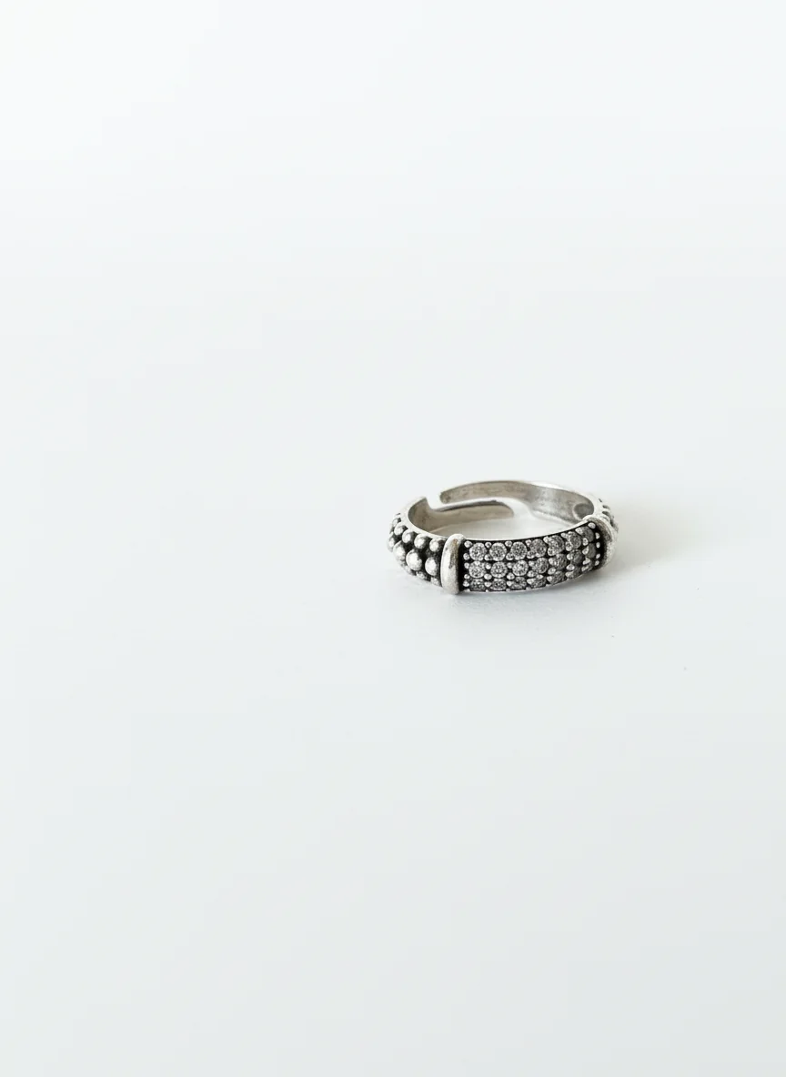 Podesiva forma omogućava udobno prilagođavanje prstu i stabilno nošenje tokom celog dana. U minimalističkim kombinacijama dodaje dozu elegancije, dok nošen samostalno postaje jasan i upečatljiv stilski izraz.