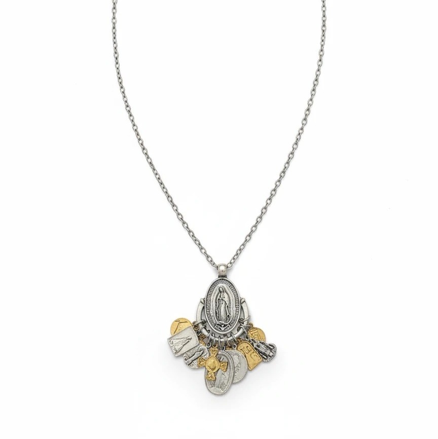 Isandra ogrlica nosi mističnu energiju zahvaljujući religijskim ikonama i simboličnim privescima. Kombinacija srebrnih i zlatnih tonova daje joj bezvremensku eleganciju, dok dužina od 60 cm i podesivi oblik omogućavaju lako uklapanje u različite stilove. Dizajnirana je da svakom koraku doda snažan i autentičan izraz.
