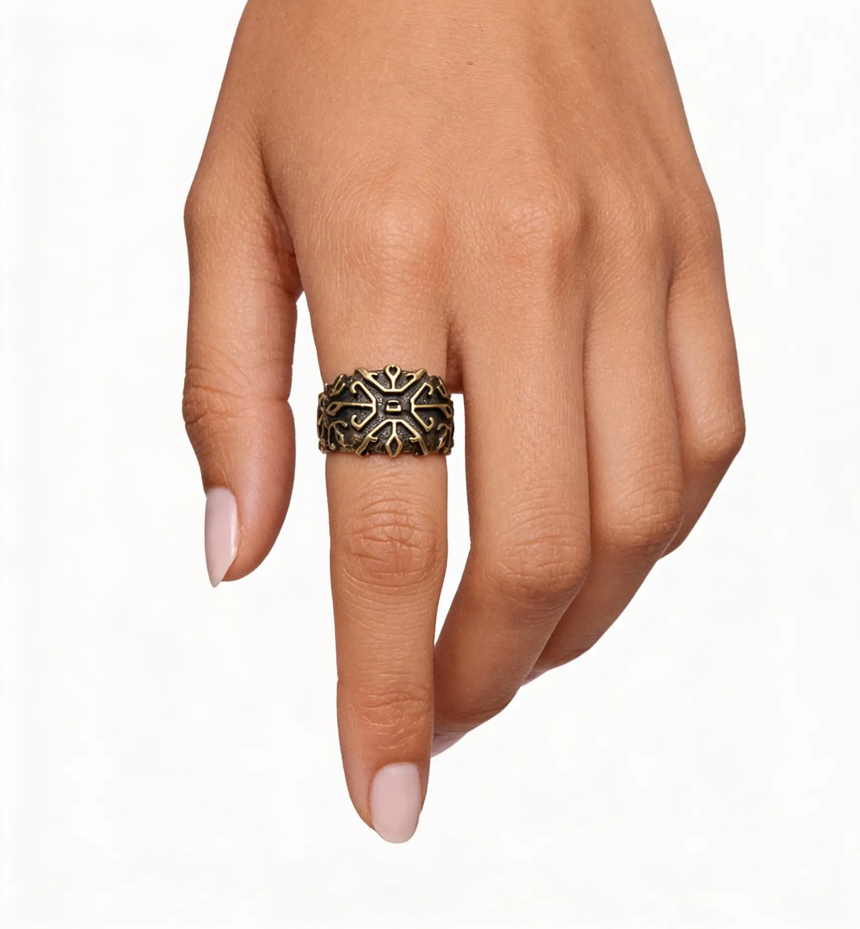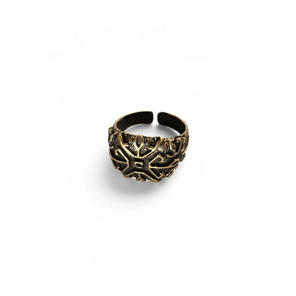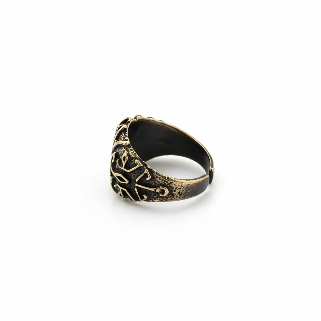 Sa reljefnim motivima u antik bronzanoj teksturi, Ravena prsten donosi snažan i mističan izraz. Dizajn inspirisan estetikom drevnih epoha reinterpretiran je kroz modernu formu, dajući svakom stilu dubinu i karakter.