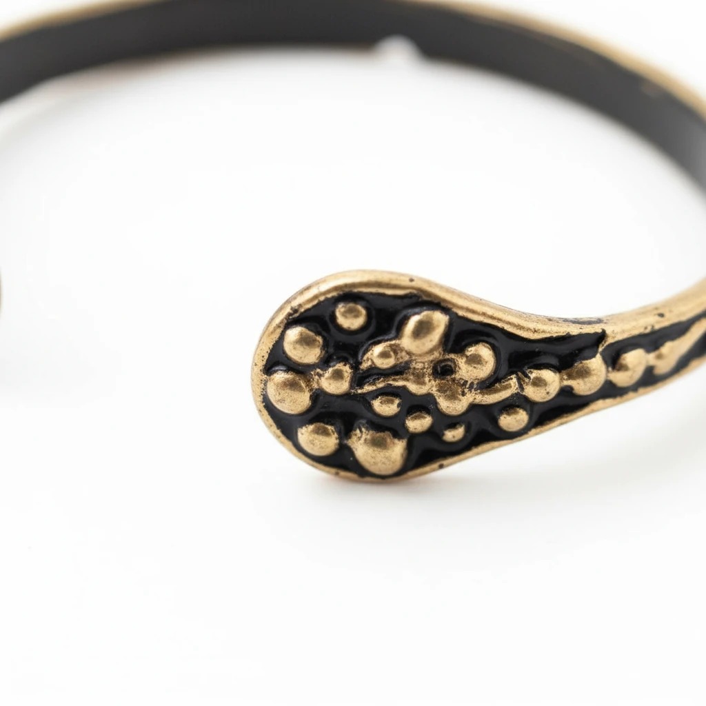 Tharos Narukvica svojom bronzanom toplinom i ručno izrađenim reljefnim detaljima donosi autentičan i karakterističan izgled. Organski oblik omogućava da se prirodno prilagodi zglobu, dok njen dizajn pruža snažan i jedinstven stil. Odlično se kombinuje sa jednostavnim odevnim stilovima, ali i sa slojevitim nakitom za izražajniji izgled.