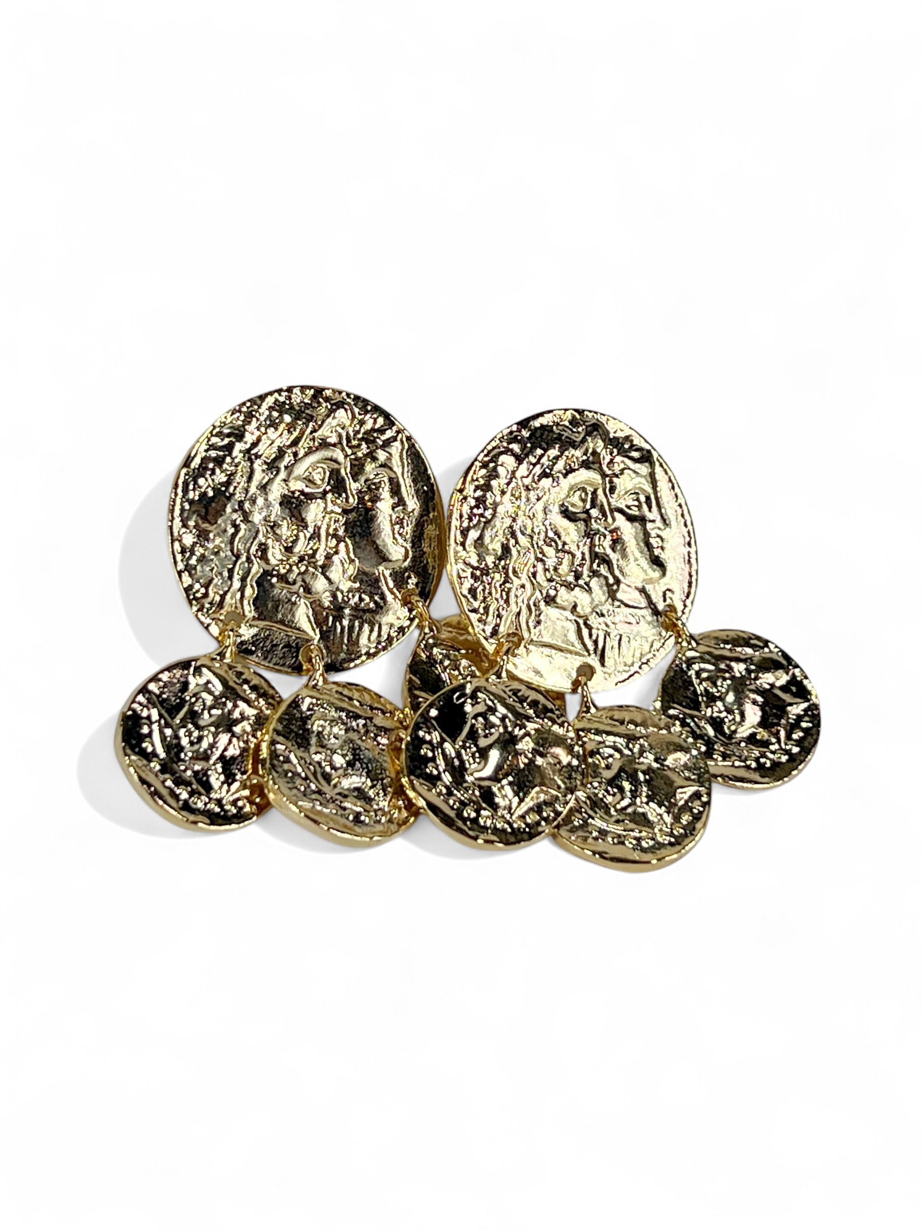 Valeria minđuše spajaju luksuzni izgled antičkih zlatnih novčića sa modernom elegancijom. Izrađene su od mesinga sa zlatnom presvlakom, a više sitnih antičkih motiv-privjesaka dodaje im pokret i upečatljiv sjaj. Zahvaljujući svom laganom materijalu, veoma su udobne za nošenje, a njihov bezvremenski dizajn čini ih savršenim izborom kako za svakodnevne kombinacije, tako i za posebne prilike. Ove minđuše unose dašak istorijskog šarma i stvaraju sofisticiran utisak u svakoj odevnoj kombinaciji.