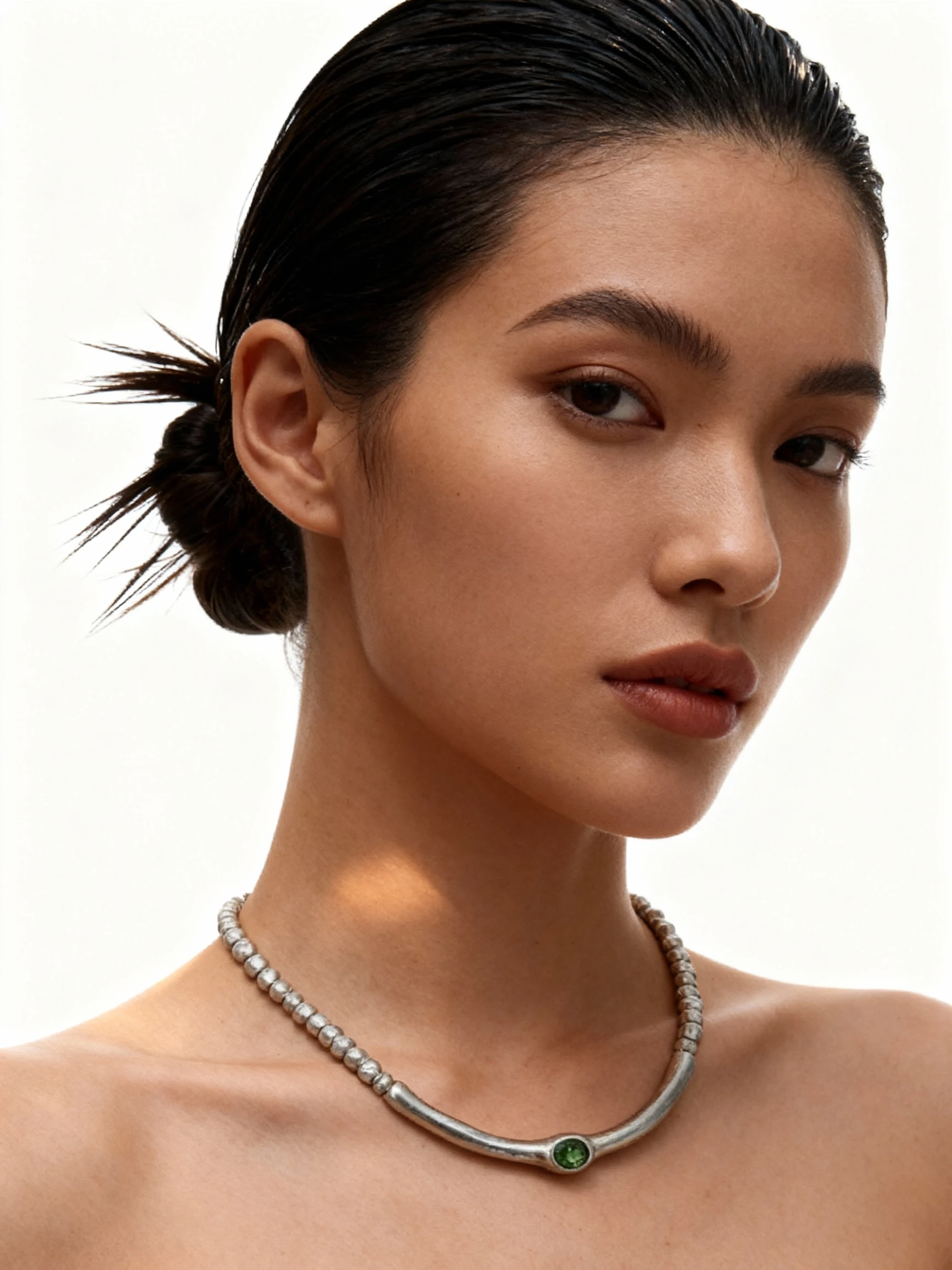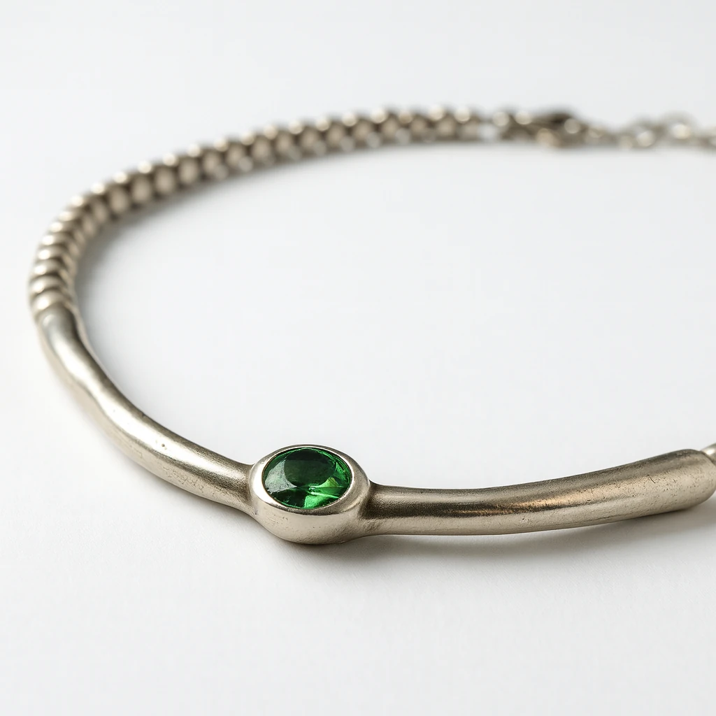 Veridia ogrlica odiše snagom i sofisticiranošću zahvaljujući intenzivnom zelenom kristalnom kamenu koji odmah privlači pažnju. Metalna forma sa antiknim prizvukom, u kombinaciji sa modernim dizajnom, stvara jedinstven i bezvremenski komad nakita. Nošena samostalno pruža minimalističku eleganciju, dok u kombinaciji sa drugim ogrlicama omogućava slojevite i autentične stilove.